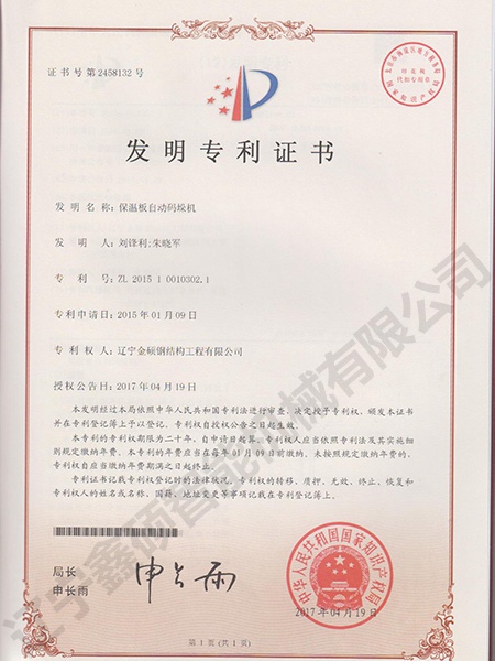 Invention patent of automatic palletizer for insulation board